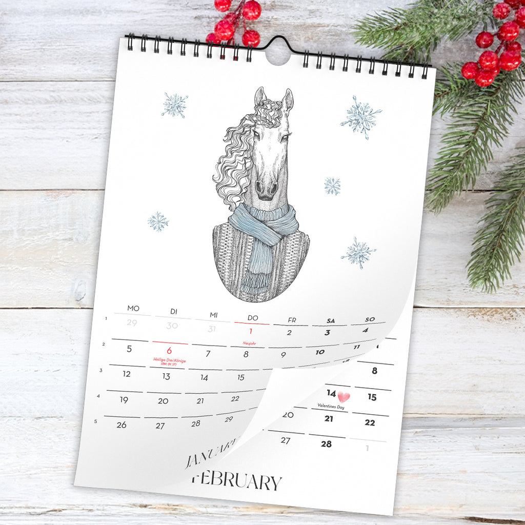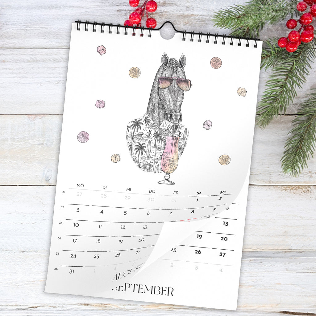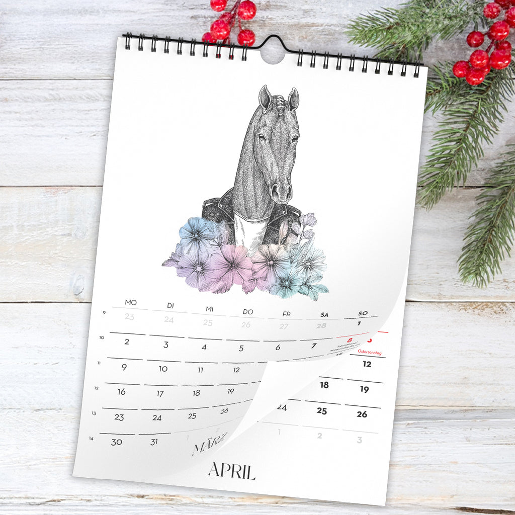 Unser wunderschöner Jahreskalender im DIN-A4-Format begleitet dich Monat für Monat mit zauberhaften Pferdeillustrationen. Jede Seite ein kleines Kunstwerk – damit du jeden Tag mit einem Lächeln startest 😊.
