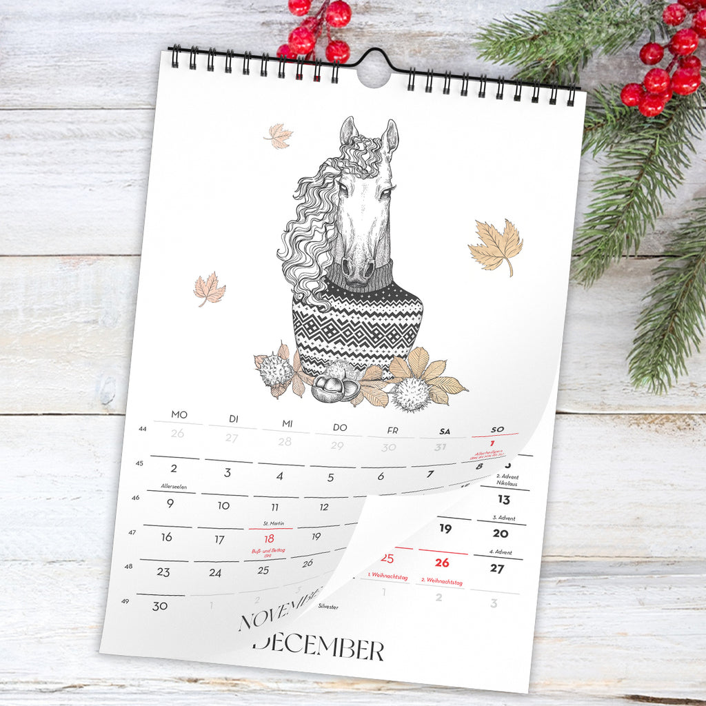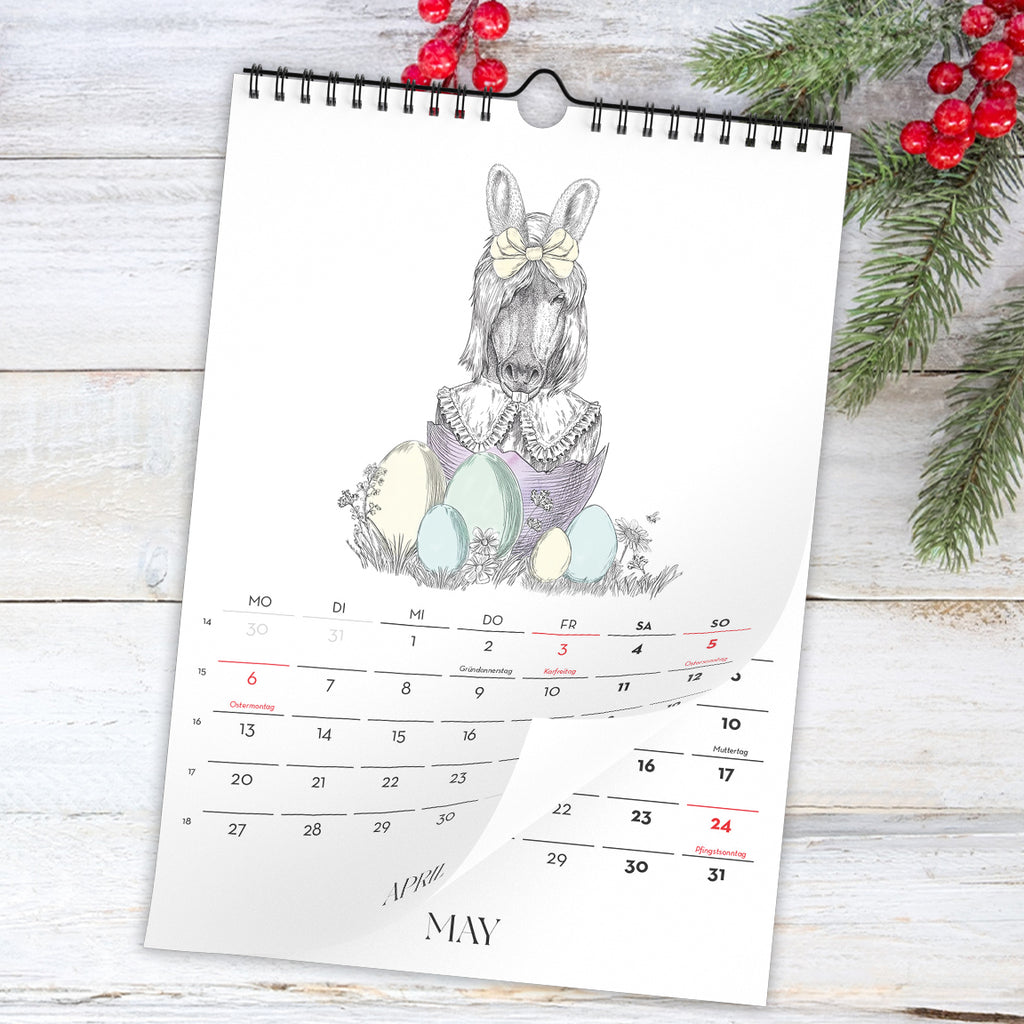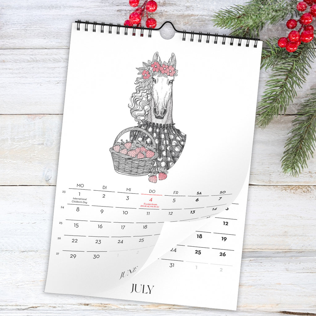 Unser wunderschöner Jahreskalender im DIN-A4-Format begleitet dich Monat für Monat mit zauberhaften Pferdeillustrationen. Jede Seite ein kleines Kunstwerk – damit du jeden Tag mit einem Lächeln startest 😊.